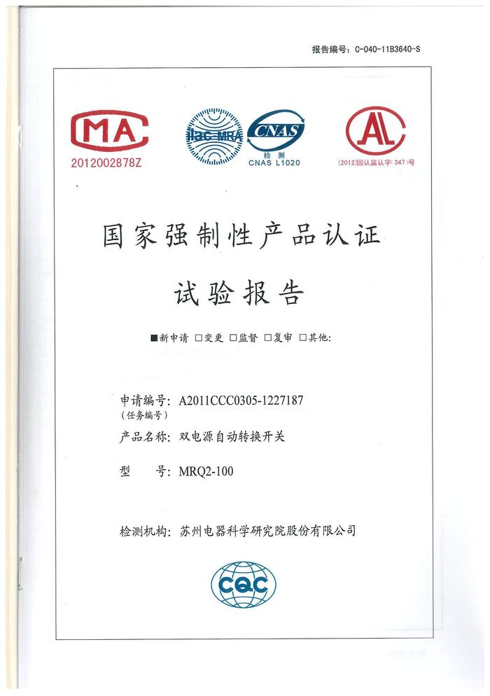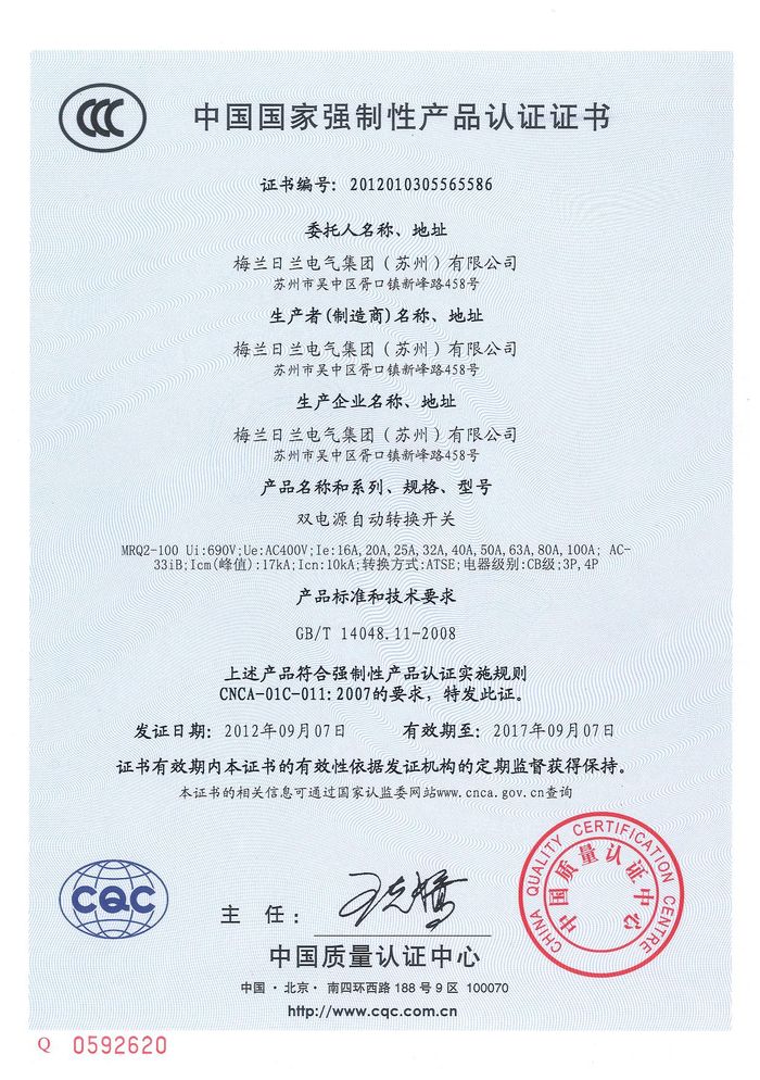 MRQ2-100雙電源資質(zhì)證書(shū)