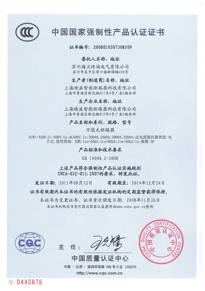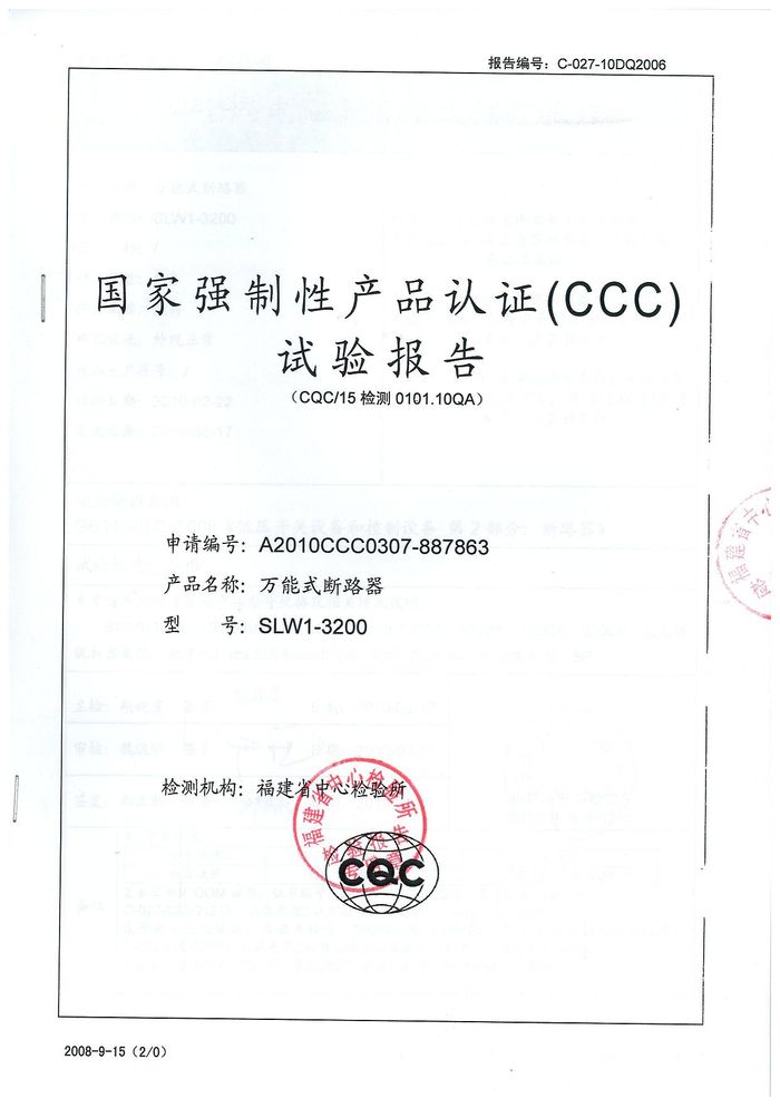 SLW1-3200萬(wàn)能斷路器資質(zhì)證書