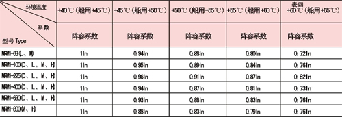 注: 以上降容系數均在通于殼架額定電流下測得