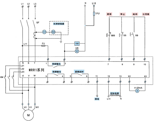 1、2旁路繼電器端子可用于起動(dòng)完畢后切換至旁路接觸器