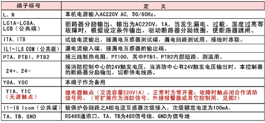 斷路器分勵輸出,輸出為AC220V或AC36V,lA。當發(fā)生漏電、過載、溫度過高等故障時,根據(jù)設(shè)定條件輸出,驅(qū)動斷路器分勵線圈,使斷路器跳閘。
