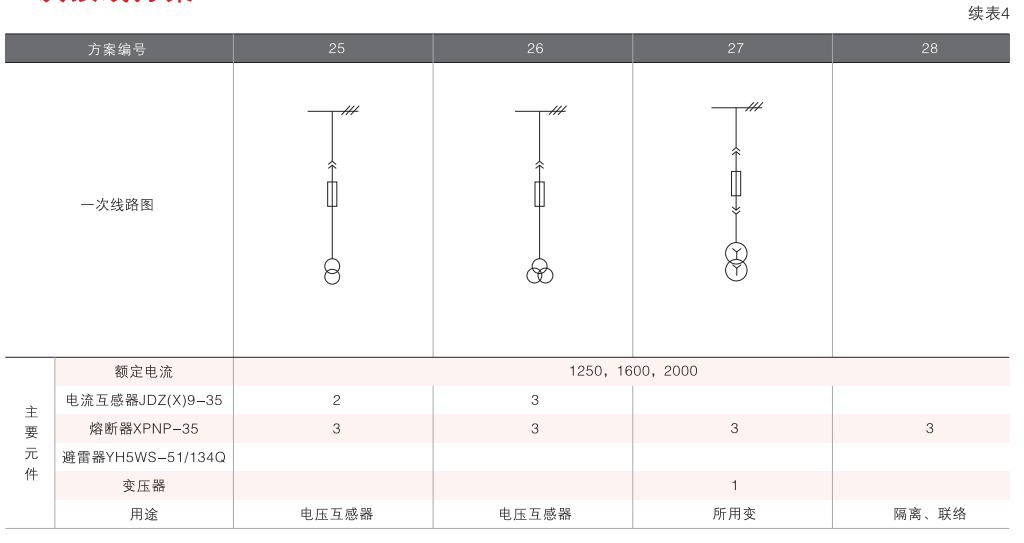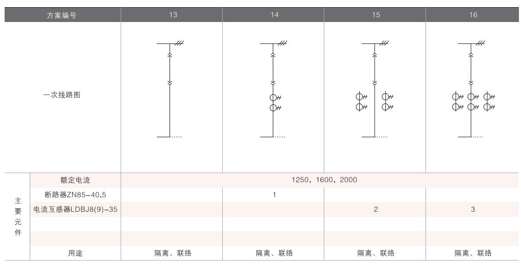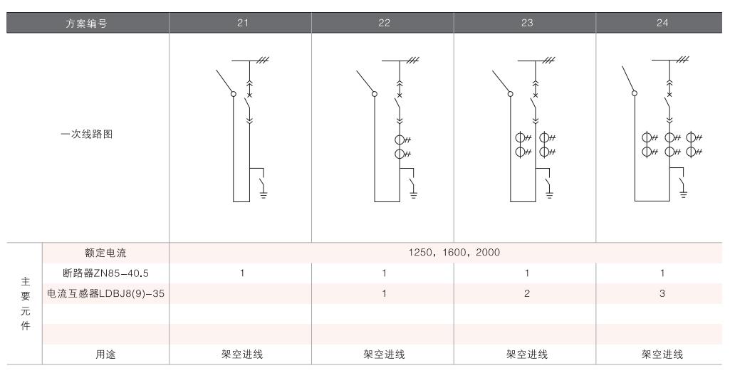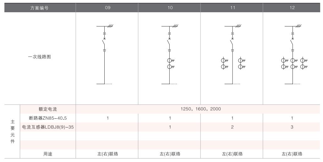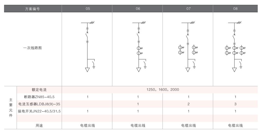 開關(guān)柜的一次接線方案有27個(gè)常用典型方案,能滿足用戶電纜進(jìn)出線、架空進(jìn)出線,聯(lián)絡(luò)級(jí)測量、保護(hù)等的需要,若有不同與現(xiàn)有方案的其他方案的需要,請(qǐng)與廠方協(xié)商。