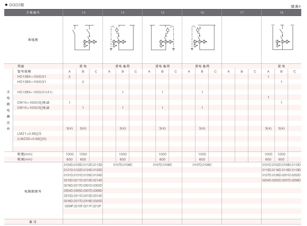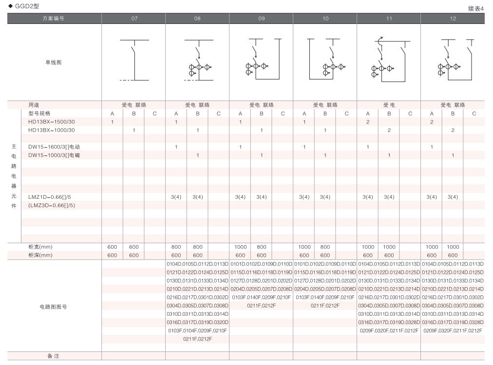 此外,為適應(yīng)無功補(bǔ)償?shù)男枰O(shè)計了GGD電容補(bǔ)償柜,其主電路方案4個,共12個規(guī)格。